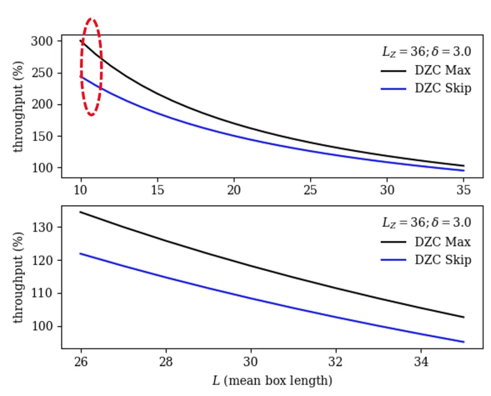 如本例所示,当包裹尺寸存在众多变化时,DZC™能够动态调整区域长度,从而实现最大效益。包裹尺寸越均匀,提升幅度会减小,但依然显著。